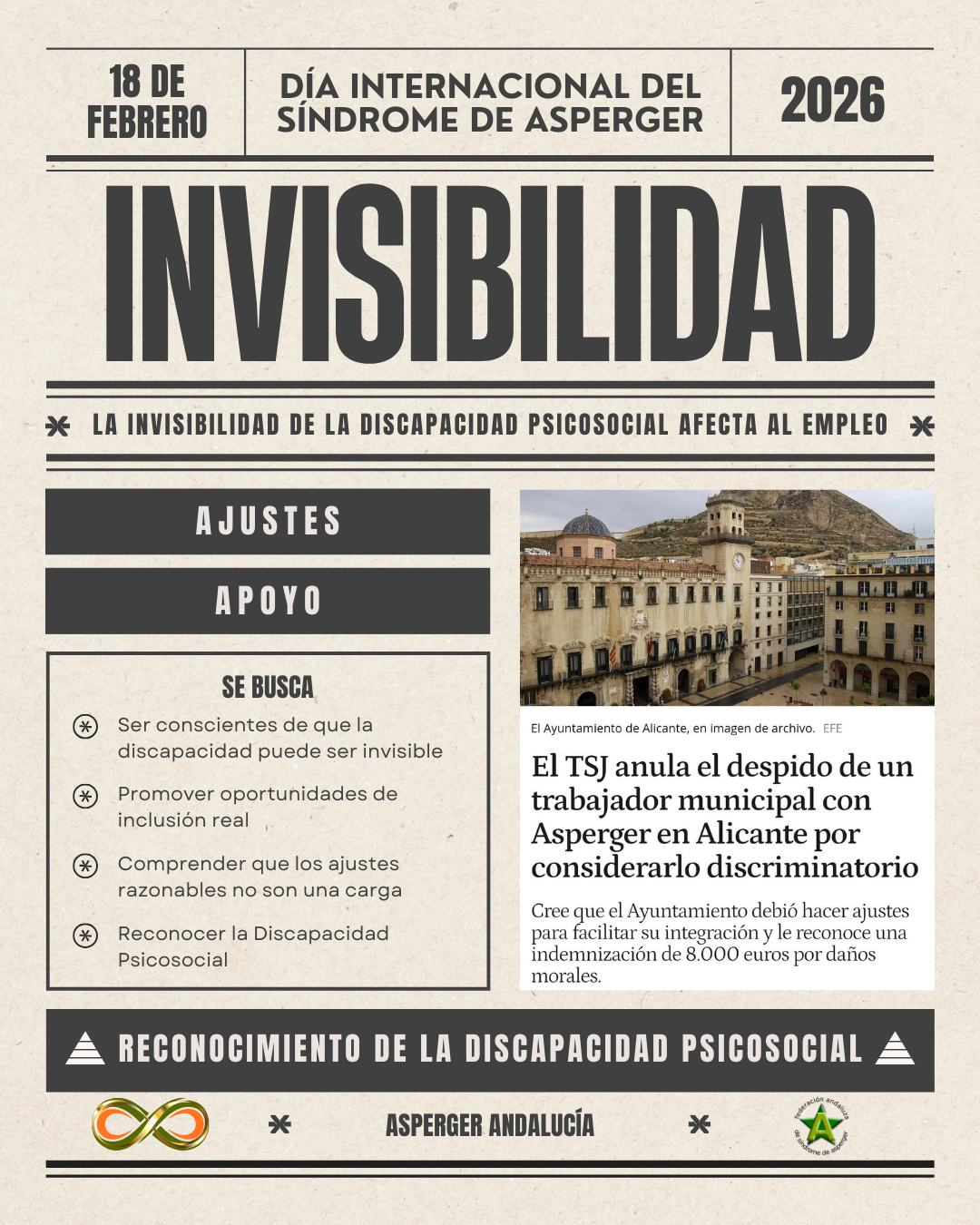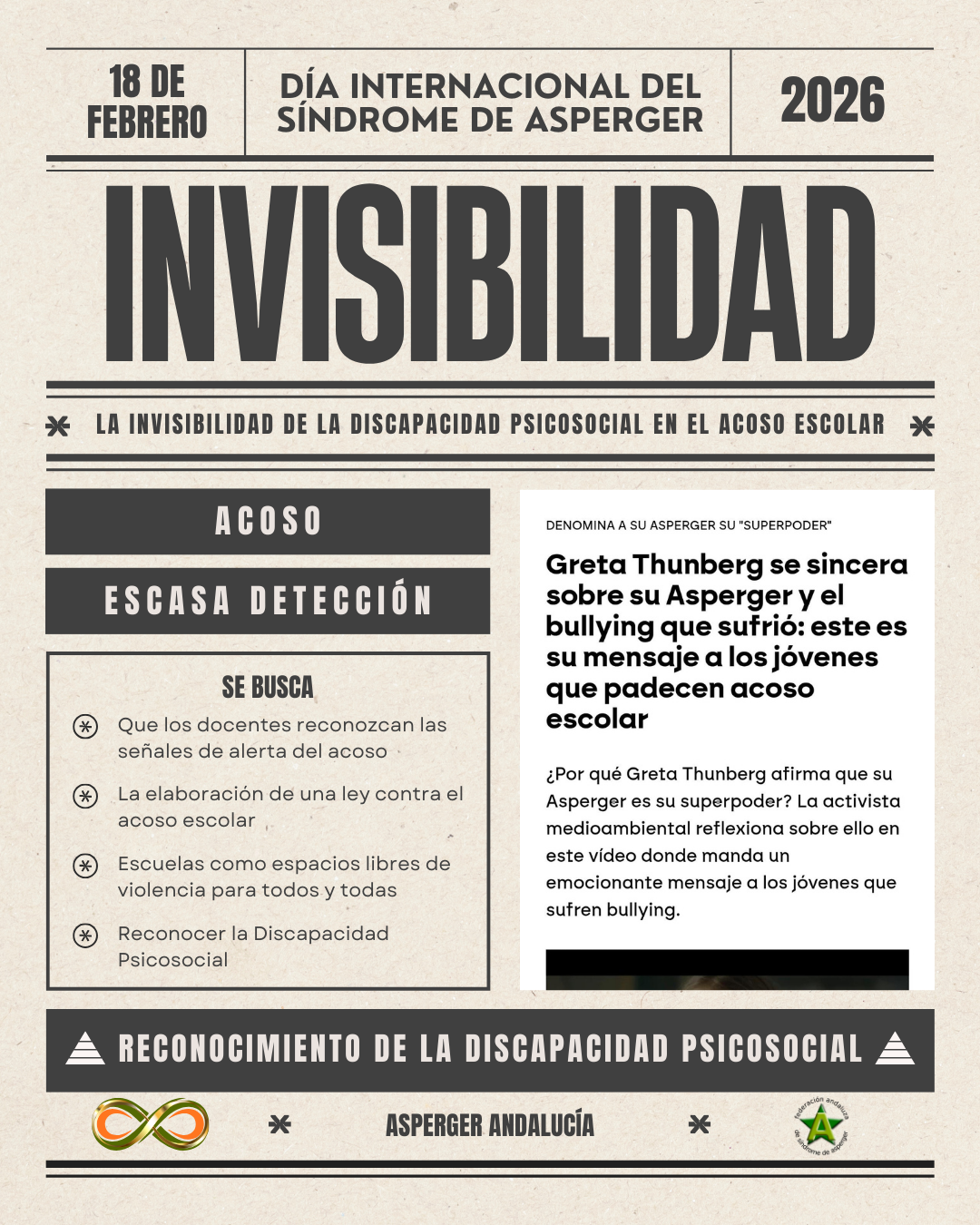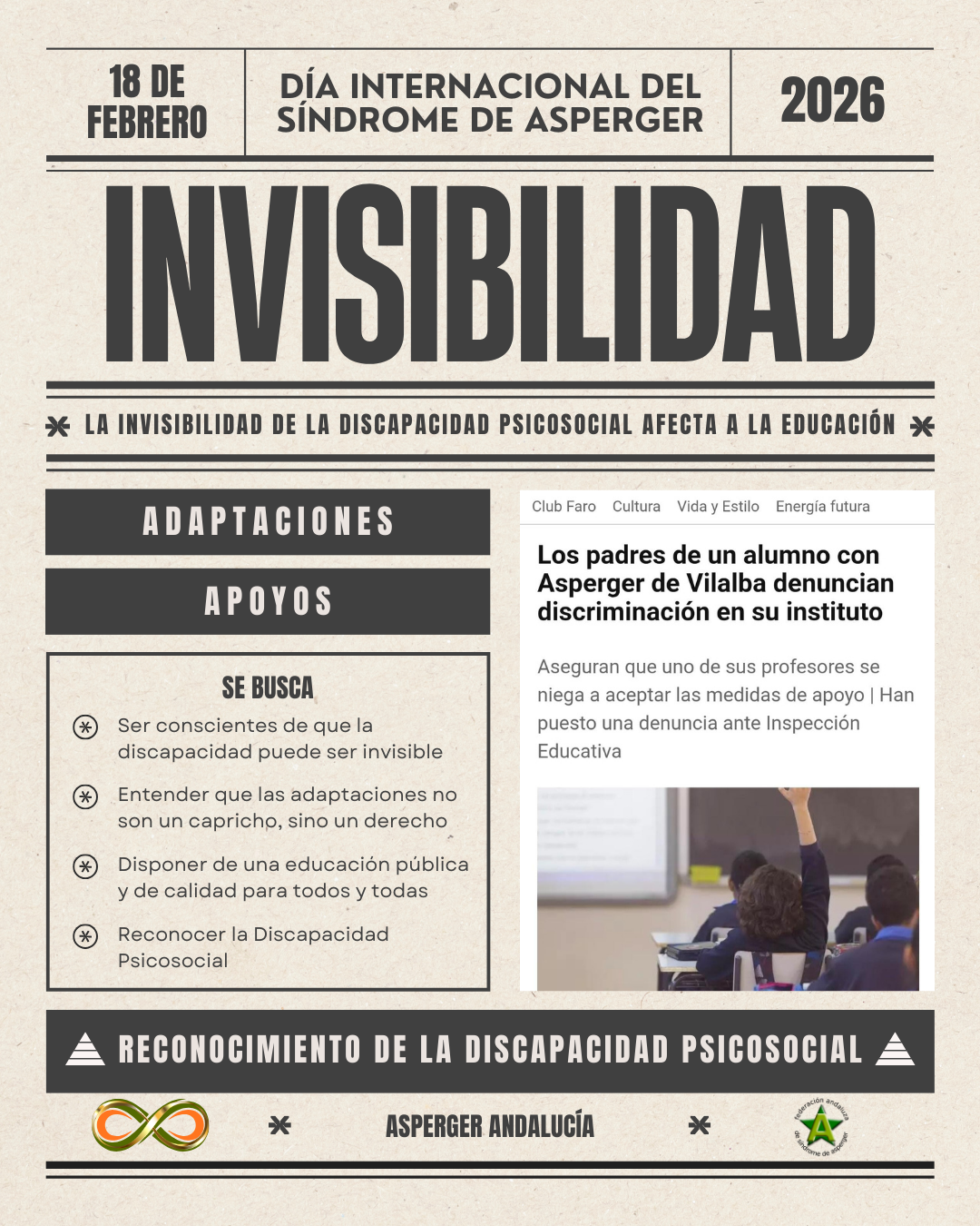 Con motivo del Día Internacional del Síndrome de Asperger, que se conmemora cada año el 18 de febrero, el Parlamento de Andalucía ha presidido un acto institucional con el que la Cámara autonómica ha expresado de nuevo su respaldo a las demandas de las familias y las propias personas Asperger.